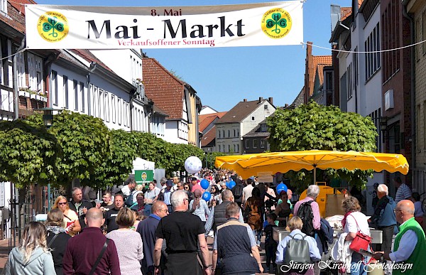 Sarstedt (jüki). Die GHG, Sarstedts starke Gemeinschaft für Handel und Gewerbe, kann sich im 50. Jahr ihres Bestehens noch auf ein weiteres Jubiläum freuen: Der weit über Sarstedts Grenzen hinaus bekannte „Maimarkt“ findet am Sonntag, 4. Mai., bereits zum 25. Male statt – und die Kaufmannschaft feiert dies von 13 bis 18 Uhr ab der Innerstebrücke bis zum Hahnenstein mit einem tollen Programm für Jung und Alt. Rund 70 Aktionen in der Innenstadt, Entenrennen auf der Innerste und viel Musik sind in Vorbereitung. In vielen Geschäften besteht an diesem verkaufsoffenen Sonntag die Möglichkeit zum Stöbern und Schnäppchen machen, obendrein bieten an zahlreichen Ständen fahrende Händler ihre unterschiedlichsten Waren an. Die Kunden können bei hoffentlich schönem Wetter durch die Geschäfte schlendern und sich über die aktuellen Angebote der Frühlings- und Sommermode oder Dekoartikel für drinnen und draußen informieren oder Wohltuendes für Leib und Seele erstehen. Für die Kinder gibt es auf dem Hallenbadparkplatz ein Karussell sowie eine Bungee-Anlage. An verschiedenen Stellen wird Musik für Unterhaltung der Besucher sorgen.